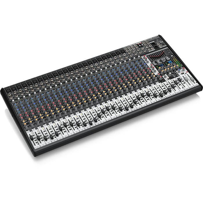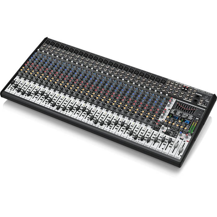 The 32-Input SX3242FX comes equipped with 24 of our legendary, Phantom powered XENYX Mic Preamps, 4 stereo Input channels, 2 Aux Sends and 2 stereo FX Returns, plus Inserts on all mono channels. Other features include: 4 Subgroups for mixing versatility; Main Inserts (the ideal path for connecting graphic equalizers or compressor/limiters); Mono Out with sweepable Low-Pass Filter for direct connection to active subwoofers – and a dedicated Talkback channel, with a built-in mic for communicating with the talent.