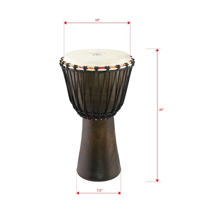 Tycoon’s TAJ-10 African Djembe 10″ Hand Drum are each made from a single piece of sun-dried Mango wood and set up with a hand-picked goat skin head.